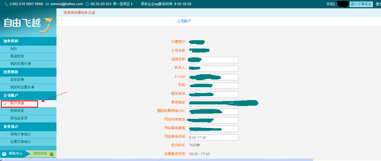 登录账户后,点击左侧红色线框内的“账户详情”,可看到本账户供应商的一些基本信息。